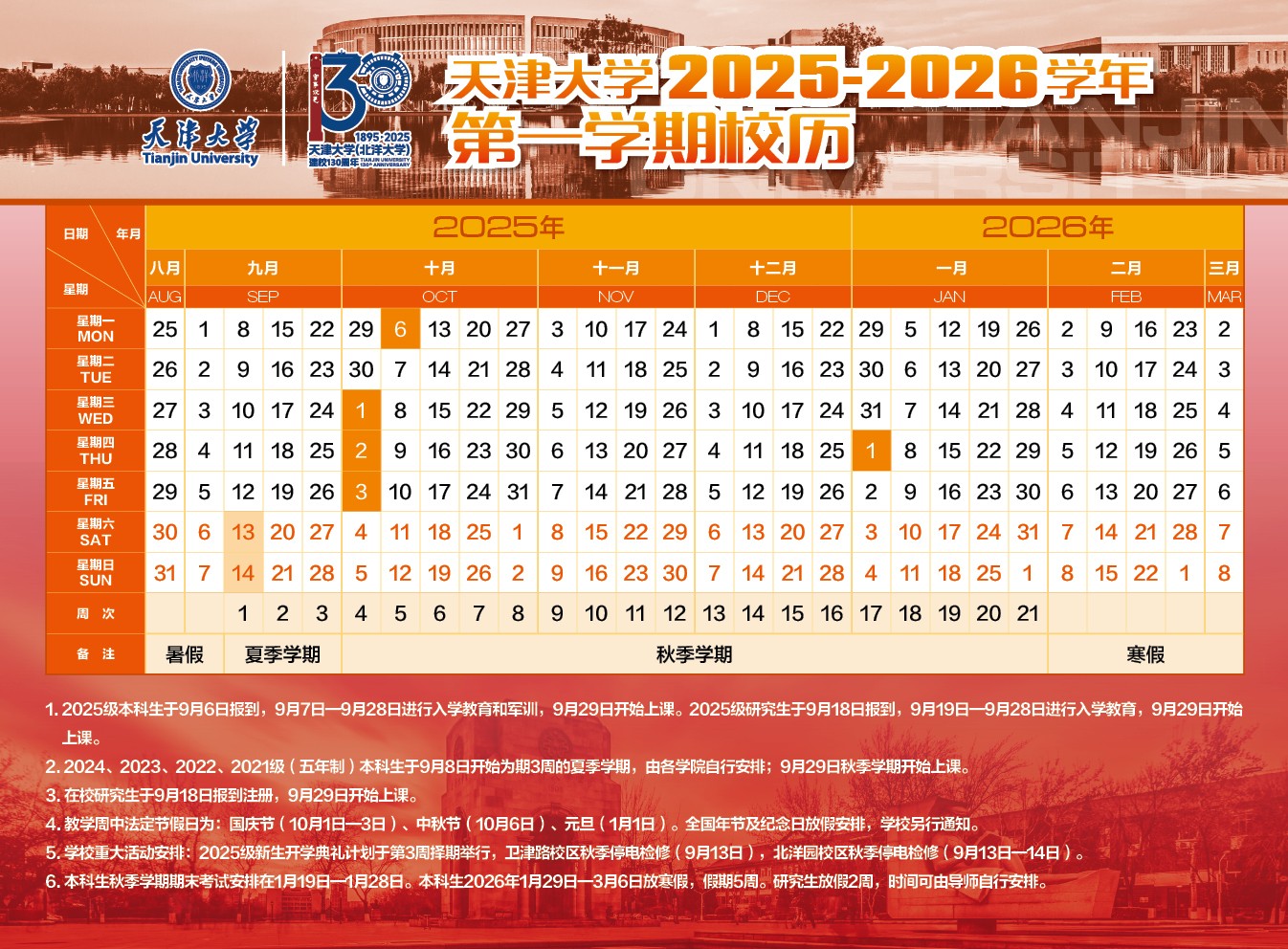 校历及作息时间